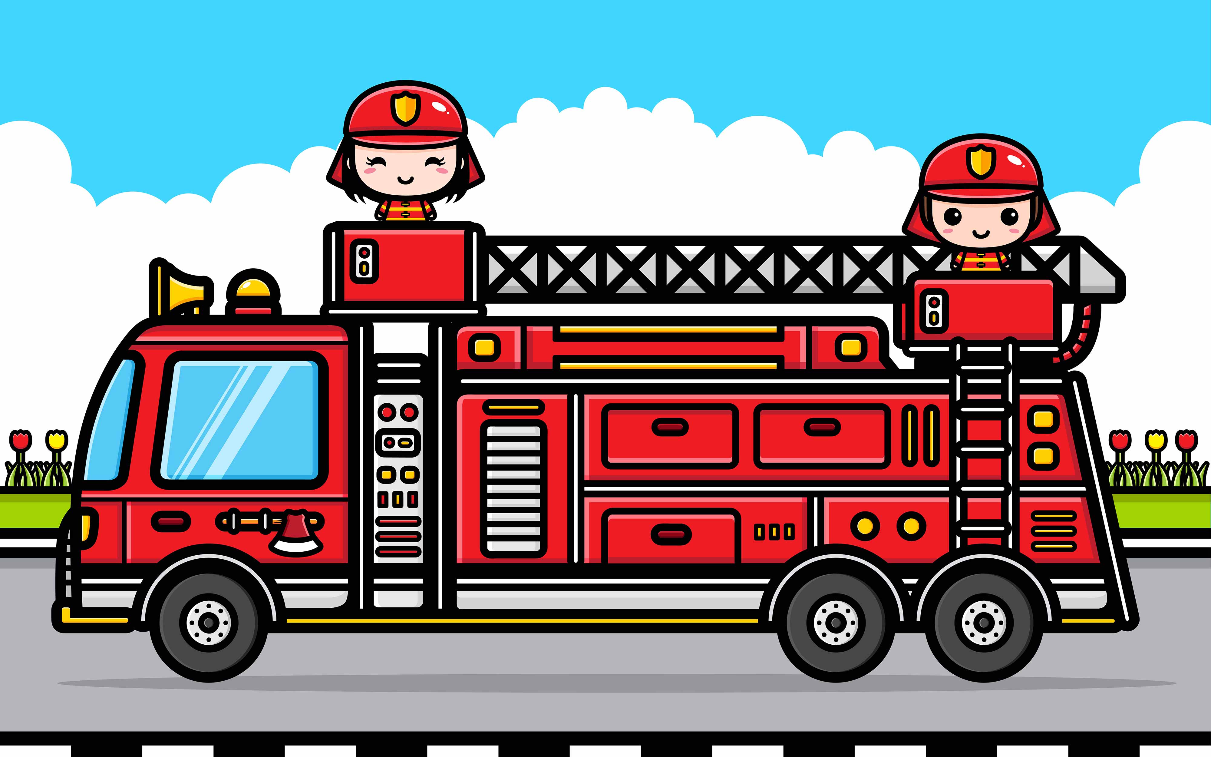 白云卡通消防车消防员